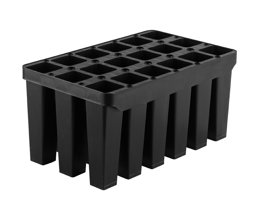 In the solid version, several root-guiding ribs in each cell create active root tips. In the Side Slit version, air pruning is applied to assure the best possible root development with a minimum of root deformation. Borders at ventilation holes between cells guide water into cells instead of through the holes.